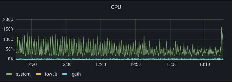 If the default dashboard isn't right for you, you can update it in the browser. Remove panels by clicking on their titles and selectign remove. Add a new panel by clicking the "plus" icon in the upper right of the browser window. There, you will have to define an InfluxDB query for the metric you want to display. The endpoints for the various metrics that Etn-sc reports are listed by Etn-sc at the address/port combination passed to --metrics.addr and --metrics.port on startup - by default 127.0.0.1:6060/debug/metrics. It is also possible to configure a panel by providing a JSON configuration model. Individial components are defined using the following syntax (the example below is for the CPU panel):